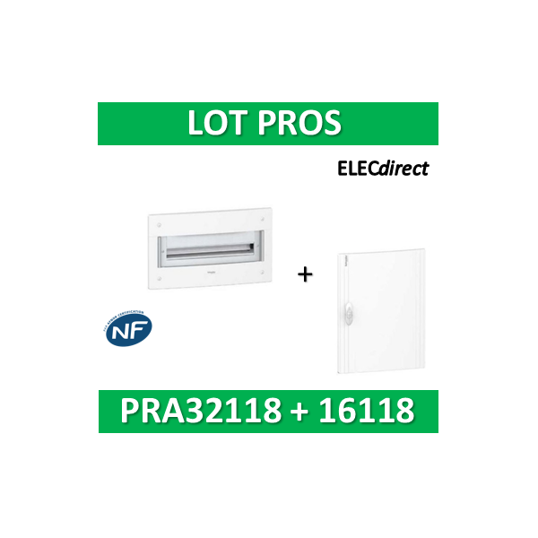 Schneider - Coffret électrique PRAGMA - encastré - 1R de 18M + porte opaque - PRA32118+PRA16118