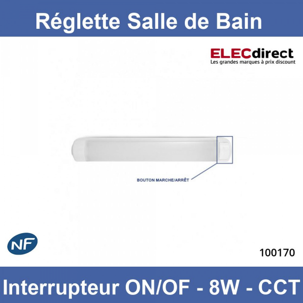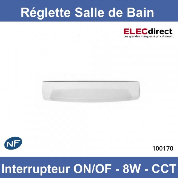 Miidex - Réglette LED Salle de Bain + Interrupteur ON/OFF - CCT - 8W - Réf : 100170