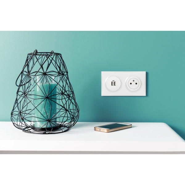 Legrand Dooxie - Prise de courant 2P+T 16A + double USB + plaque - Blanc - 600335+600343+600802