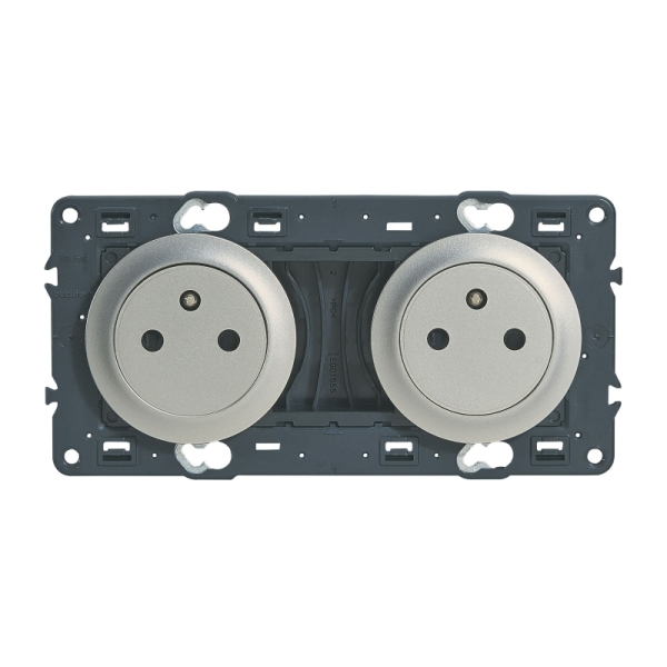Legrand - Céliane - Double prise de courant avec terre précâblée Céliane Surface - Titane - Réf : 099755