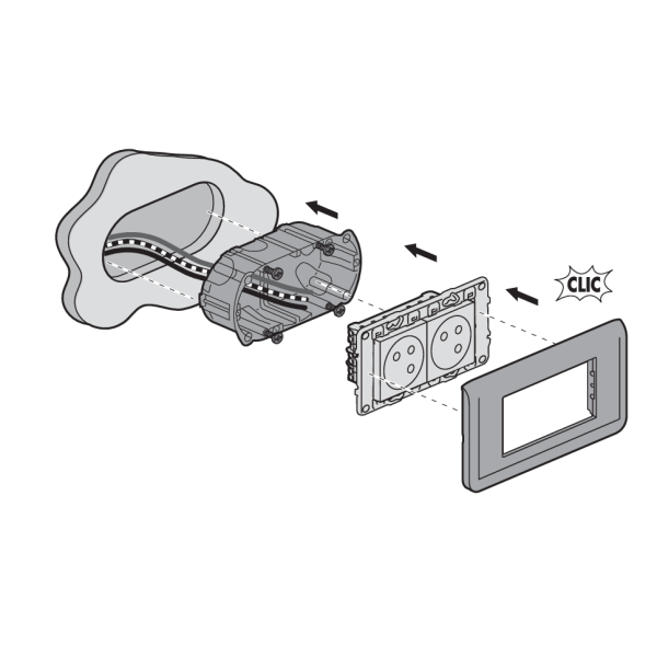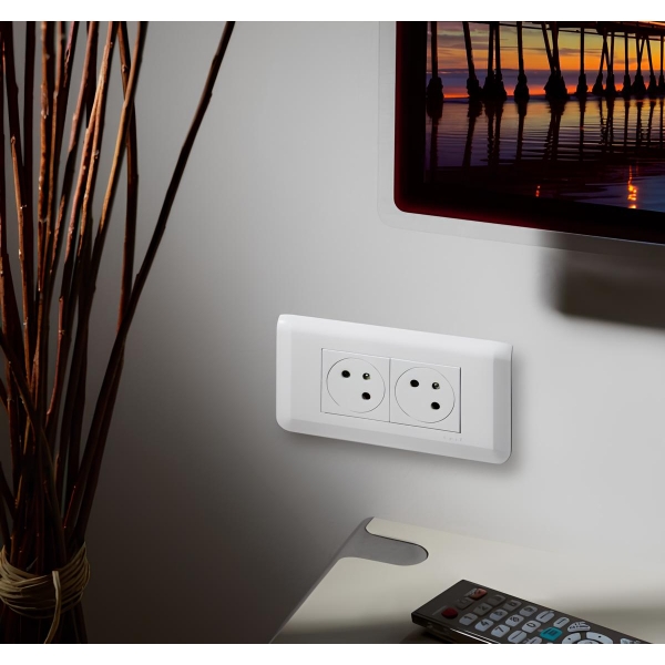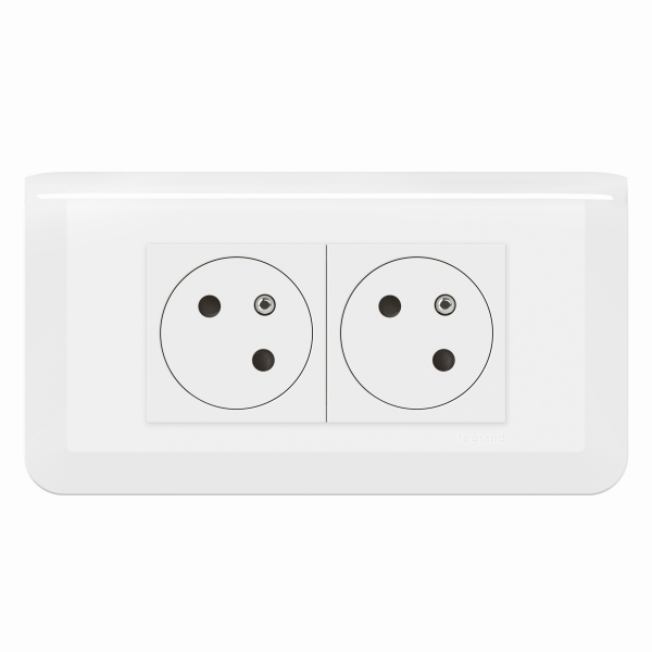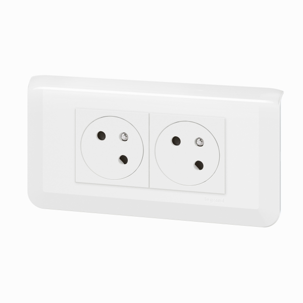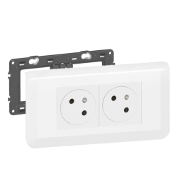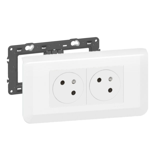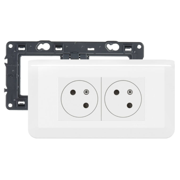 Legrand - Mosaic Link - LOT - Double prise de courant 2P+T avec plaque blanche et support - Réf : 278164L+080252+277814L