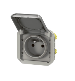 Legrand Plexo - LOT de 10 prises de courant 2P+T - 16A - 250V - composable - étanche - IP55/IK08 - Gris - Réf : 069551Lx10