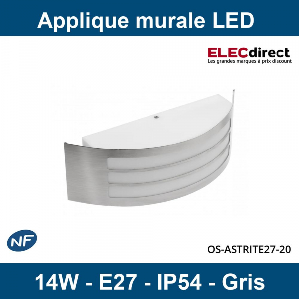 GTV Lighting - Applique murale LED ASTRIT - E27 - Gris - Réf : OS-ASTRITE27-80