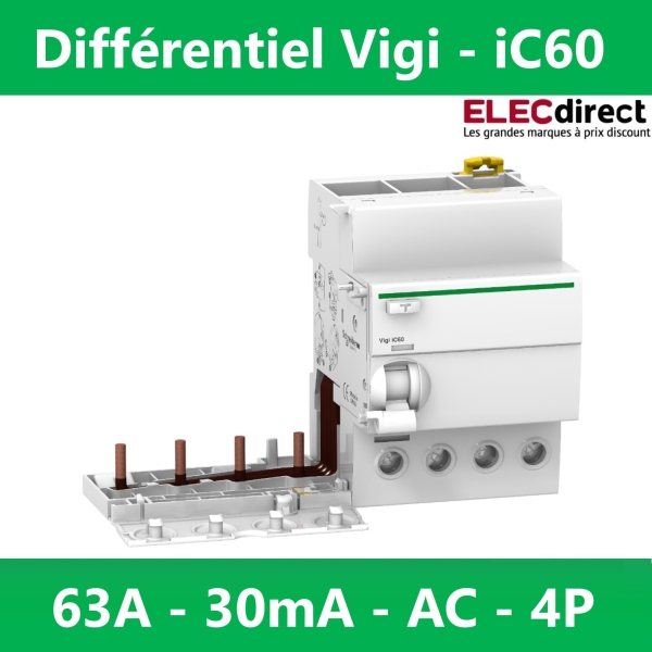 Schneider - Acti9 - iC60 - bloc différentiel Vigi - 4P - 63A - 30mA - Type AC - 230-240/400-415V - Réf : A9V41463