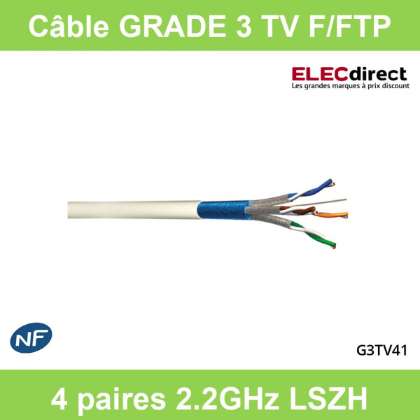 CAE - Câble Grade 3 TV F/FTP - 1x4P LSZH DCA - Couronne 100M - Réf : G3TV41
