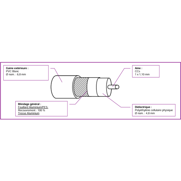 CAE - Câble TV coaxial Blanc - couronne 100m - Réf : 17 VATC
