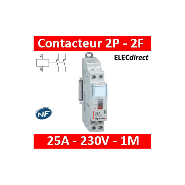 Legrand - Contacteur de puissance bipolaire bobine 230V - 25A - 2F - 412544