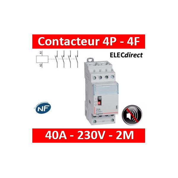 Legrand - Contacteur de puissance 4P bobine 230V silencieux - 25A - 4F - 2M - 412561