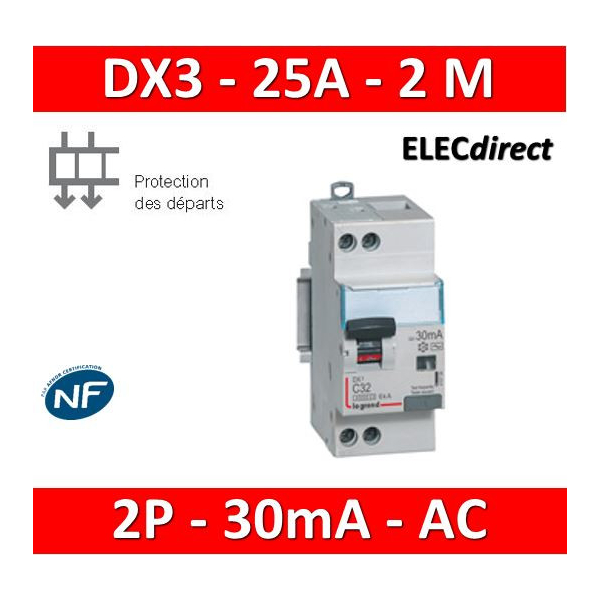 LEGRAND - Disjoncteur différentiel DX3 P+N - 25A - 30mA - AC - Réf : 410707
