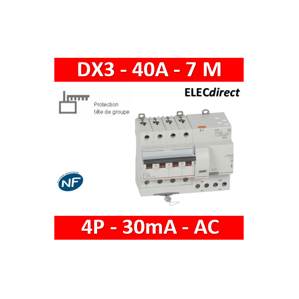 LEGRAND - Disjoncteur différentiel DX3 4P - 40A - 30ma - AC - Réf : 411201