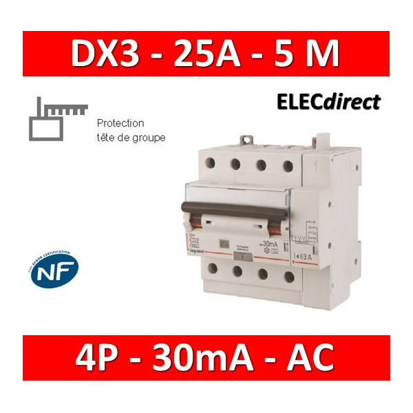 LEGRAND - Disjoncteur différentiel DX3 4P - 25A - 30ma - AC - 411199