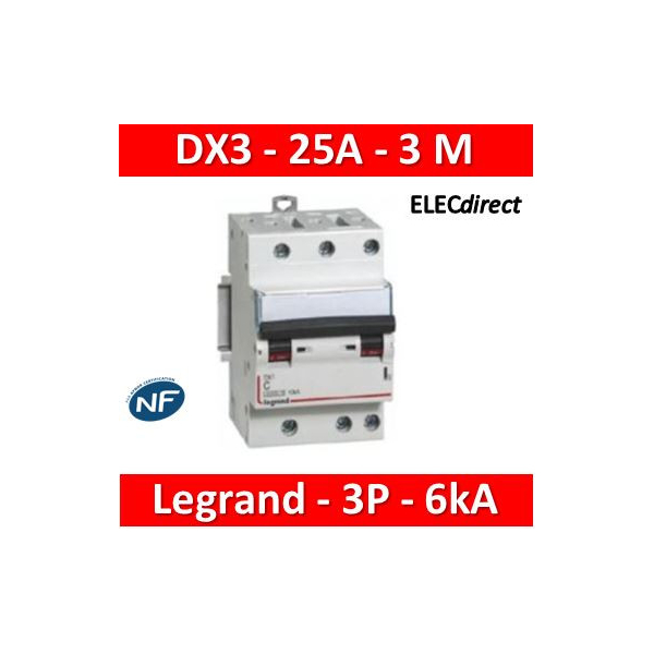 Legrand - Disjoncteur DX³ 4500 - vis/vis - 3P - 400 V~ - 25A - 6kA - courbe C - 406894