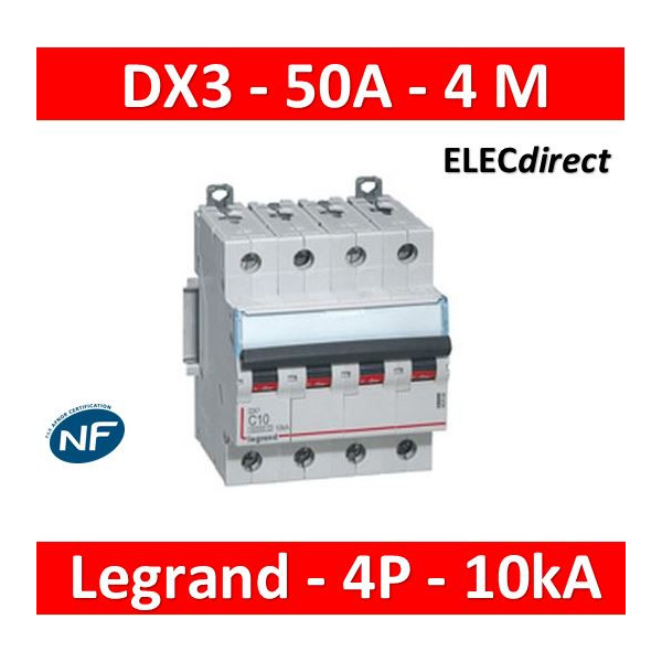 Legrand - DX3 - Disjoncteur 50A - 4P - 10kA - courbe C - Réf : 407903