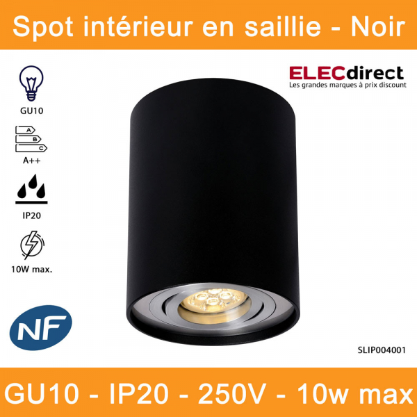 Spectrum - Spot intérieur en saillie - CHLOE GU10 noir - IP20, 10W LED max, A++ - Réf : SLIP004003
