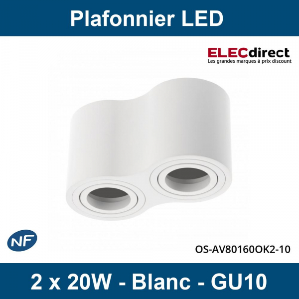 GTV Lighting - Plafonnier AVEIRO 2xGU10 - Blanc - 230V - Réf : OS-AV80160OK2-10