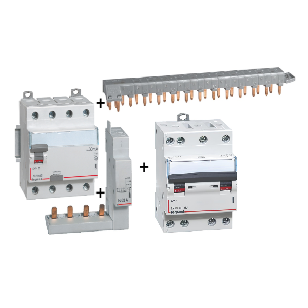 LEGRAND - dif. DX3-ID 4P 25A - 30mA - AC + Module 4P + Peigne 13M + Disj. 4P 10A - 411660+406301+405201+406908