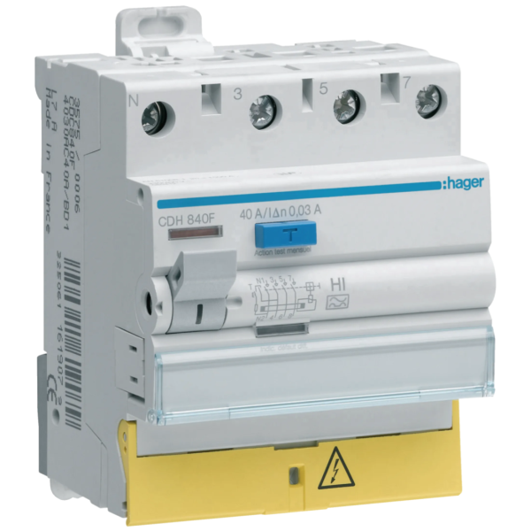 HAGER - Interrupteur différentiel 3P+N 40A 30mA HI BD - CDH840F