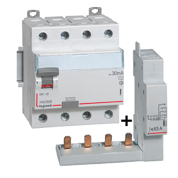 LEGRAND - Interrupteur différentiel DX3-ID 4P 25A - 30mA - AC + module 4P - 411660+406301