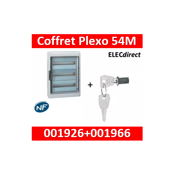 Legrand - Coffret étanche Plexo 54 modules - 3 rangées - IP65/IK09 + serrure- 001926+001966
