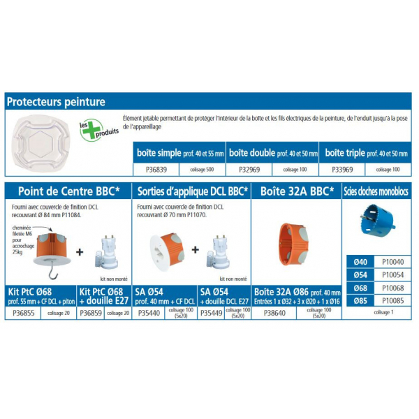 SIB - LOT - Kit Sortie d'applique DCL BBC + douille (mural) - Réf : P35449X100