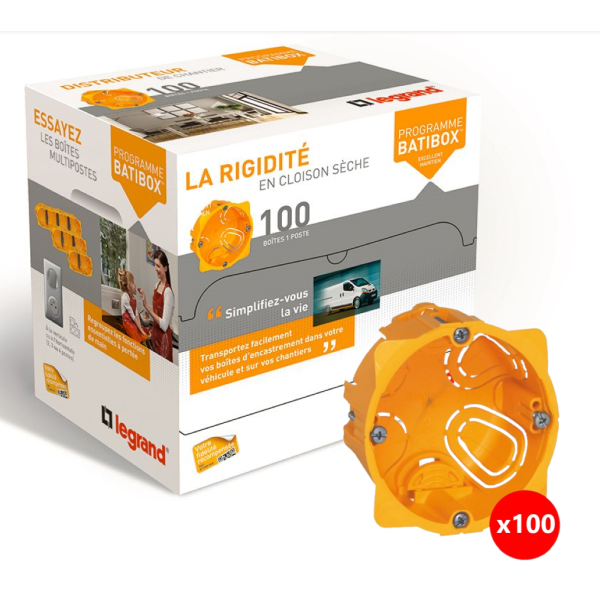 Legrand Batibox - LOT de 100 Boîtes d'encastrement 1 poste - Prof. 50 - Réf : 080051x100