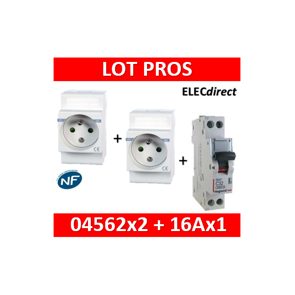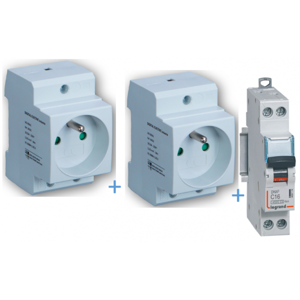 2 PC modulaire 2P+T 16A DIGITAL + disjoncteur 16A - 04562x2 + 406774