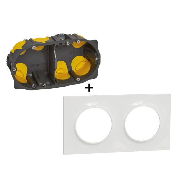 Schneider Odace - Plaque 2 postes + Boîte Batibox BBC Legrand 2 postes - Hor/vert - S520704+080022L