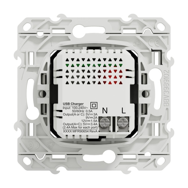 Schneider - Odace - prise USB double - charge rapide - type A+C - Blanc - 18W - 3,4A - Réf : S520219