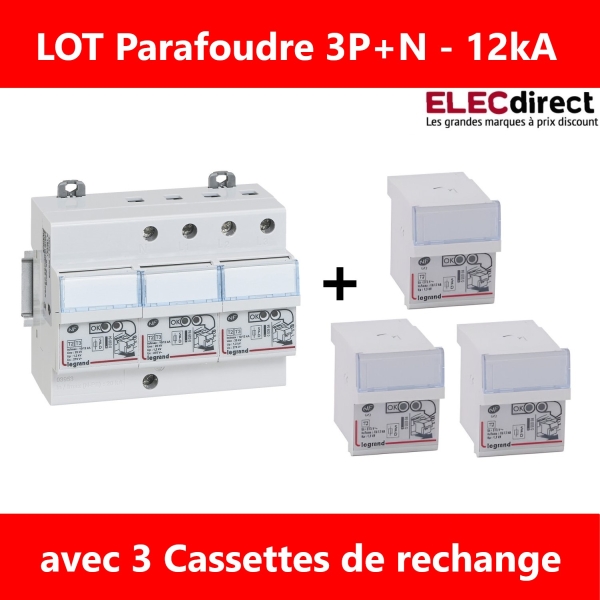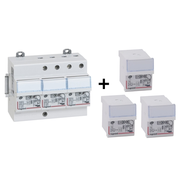 Legrand - Parafoudre Tétra 400V - Type 2 + Cassette de rechange - 003953 + 003954x3