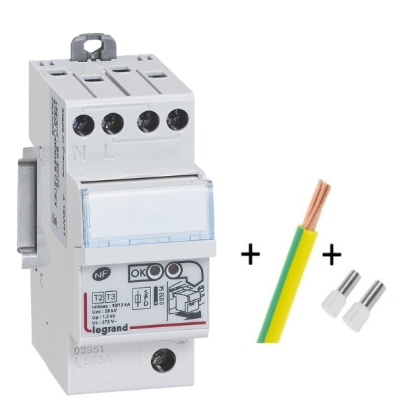 Legrand - Parafoudre bipolaire 220V - Type 2 LEXIC avec protection intégrée et fil de terre 50cm