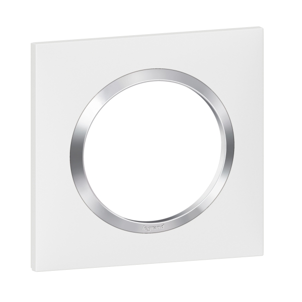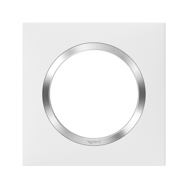 Legrand Dooxie - Plaque de Finition carrée 1 poste finition blanc avec bague effet chromé - Réf : 600841