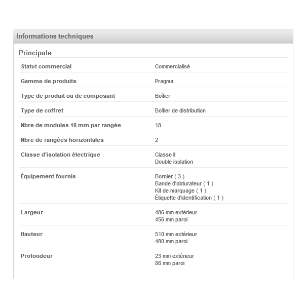 Schneider - Coffret électrique PRAGMA - encastré - 36 modules - 2 rangées de 18M - PRA32218
