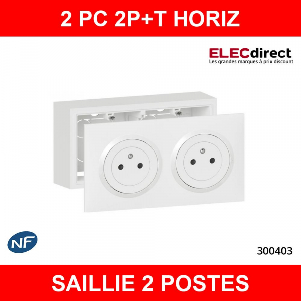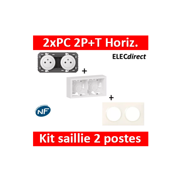 Legrand Dooxie - Kit Cadre saillie 2 postes complet - 2xPC 2P+T - précâblée - 600042+600802+600332