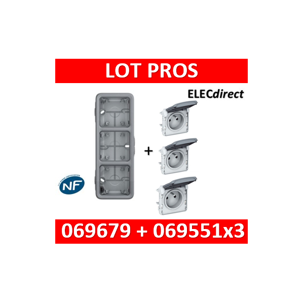 Legrand Plexo - Boîtier 3 postes verticaux - IP55/IK07 + 3 PC 2P+T 16A à câbler - 069679+069551x3