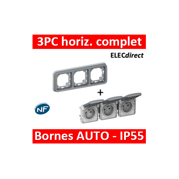 Legrand Plexo - Triple prise de courant 2P+T 16A 230V - horizontal - encastré - IP55/IK07 - 069687+069564