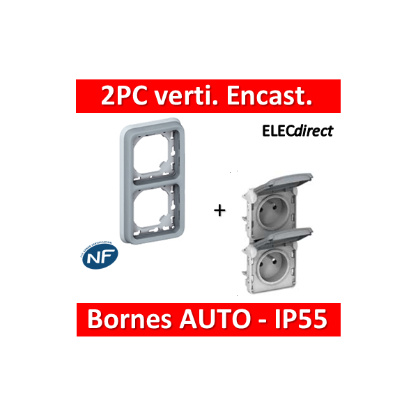 Legrand Plexo - Double PC 2P+T 16A 230V encast. - vertical - IP55/IK07 - 069685+069563