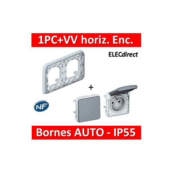 Legrand Plexo - PC 2P+T + VV - Encast. - horizontal - IP55/IK07 - 069683+069551+069511