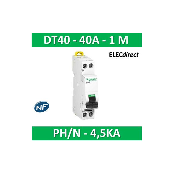 SCHNEIDER - Disjoncteur Ph/N 40A DT40K - 4,5KA - A9N21108