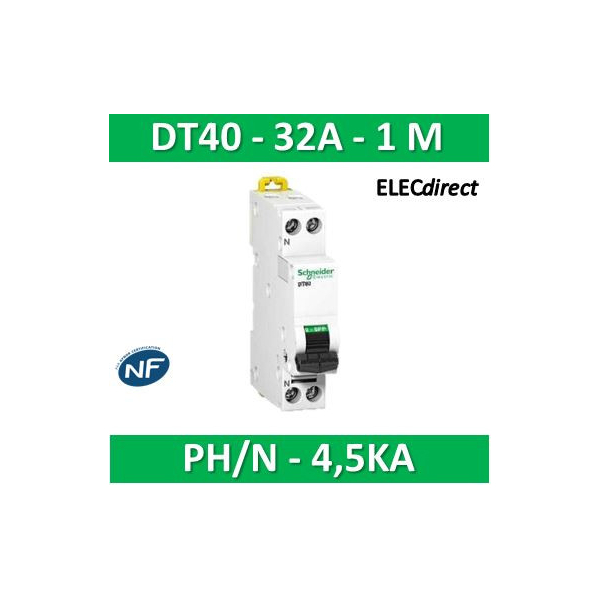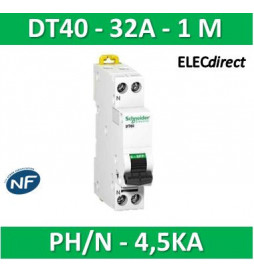 SCHNEIDER - Disjoncteur Ph/N 32A DT40K - 4,5KA - A9N21107