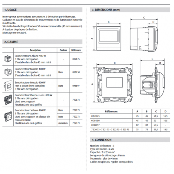 Legrand - Céliane - Ecodétecteur basique 3 fils - avec Neutre - Réf : 067025