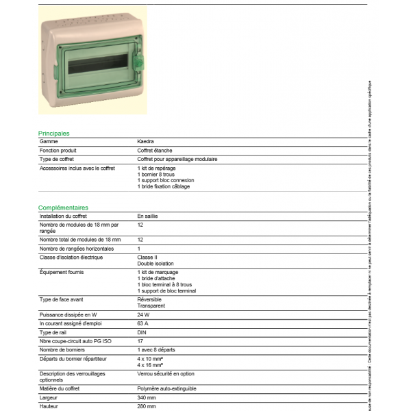Schneider - Coffret Kaedra 1 rangée 12M - IP65/IK09 - 13962