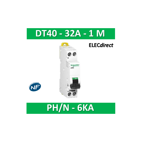 SCHNEIDER - Disjoncteur Ph/N 32A DT40 - 6KA - A9N21028