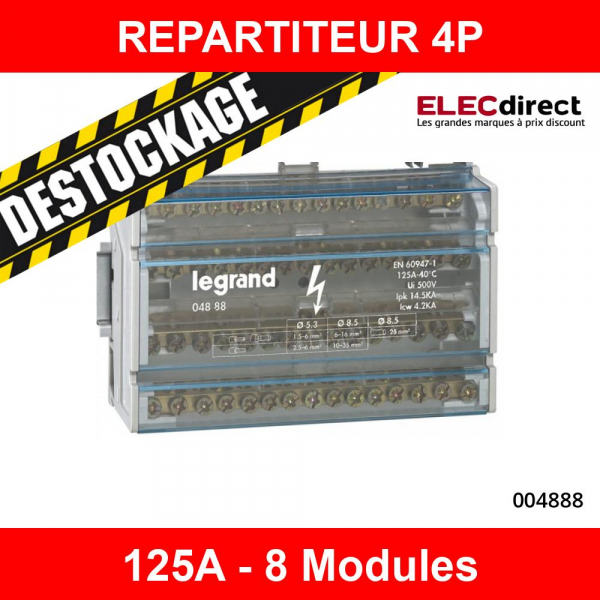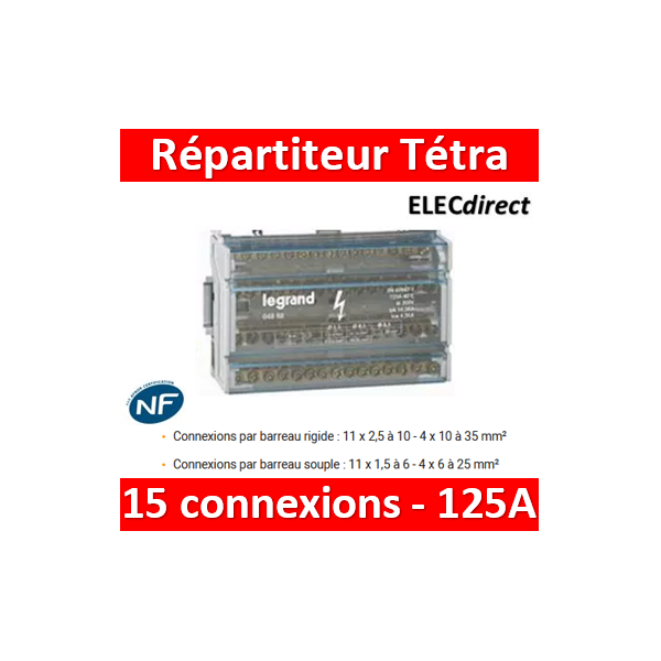 Legrand - Répartiteur Tetra- 15 connexions - 8 modules - 125A - 004888