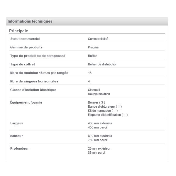 Schneider - Coffret électrique PRAGMA - encastré - 72 modules - 4 rangées de 18M - PRA32418