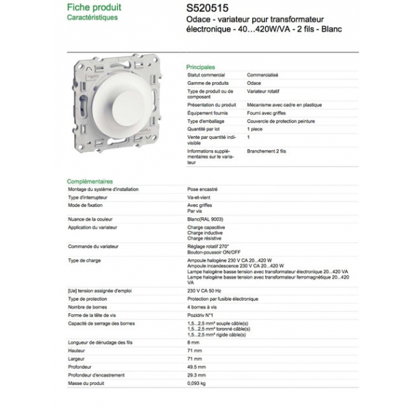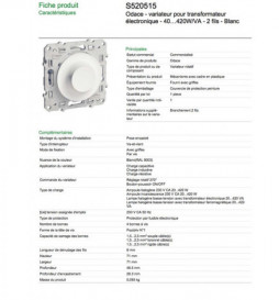 Schneider Odace - Variateur pour transfo. électronique et LED - Blanc - 420W/VA - S520515