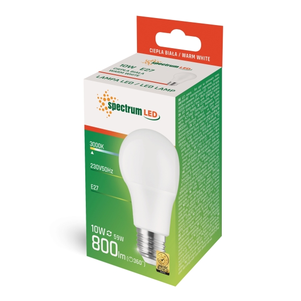 Spectrum - Ampoule LED E-27 - LED GLS 10W - A+ - Angle 270° - 3000K - 800lm - Réf : WOJ+13902
