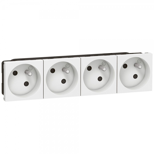 Legrand Mosaic - Quadruple prise de courant 4 x 2P+T 16A à 45° - 8 modules - 230V - 077144