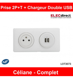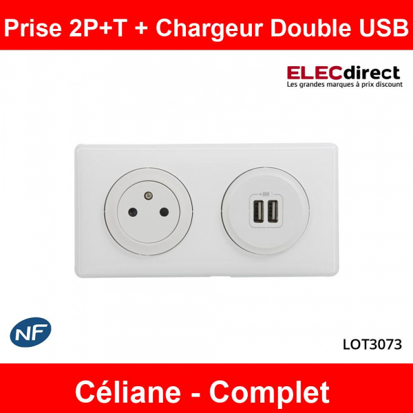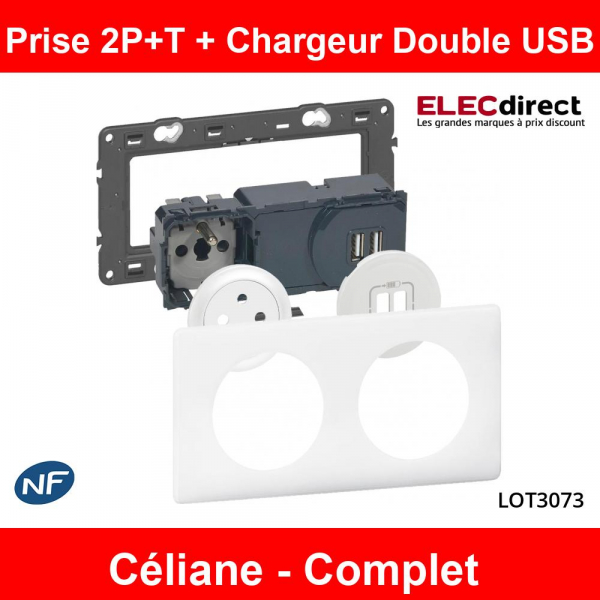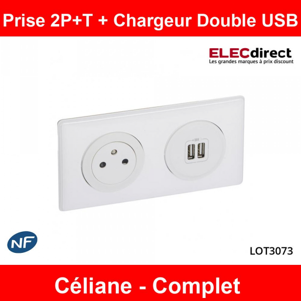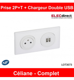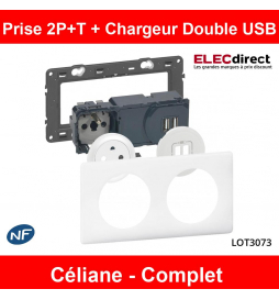 Legrand - Prise de courant 2P+T + Prise double USB Complet - 16A - Blanc - Réf : LOT3073