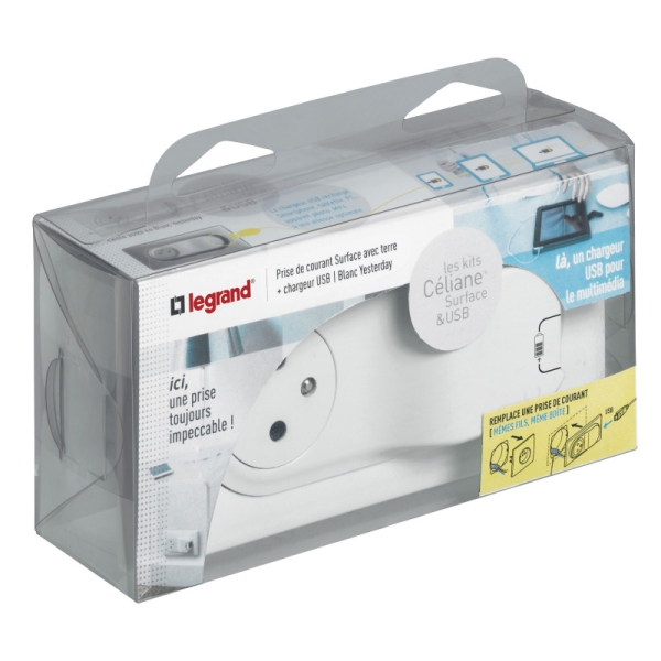Legrand - Céliane - Prise surface + chageur USB type A - Blanc - Réf : 200236