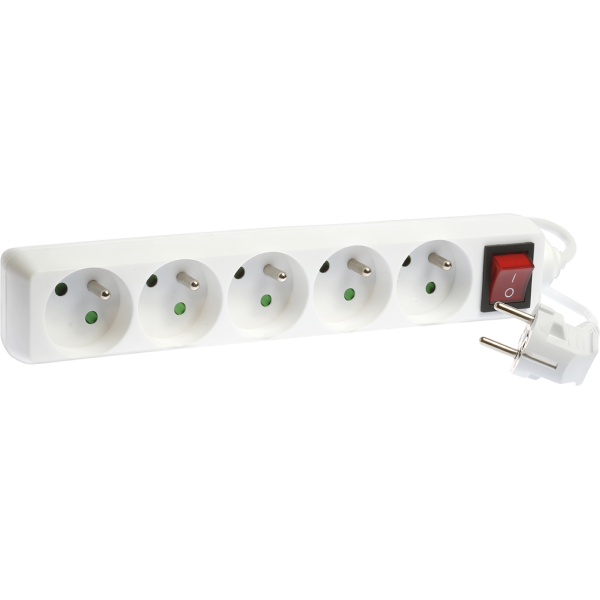 Eur'Ohm - Bloc multiprise avec interrupteur I/O - 5 Prises - Blanc - Câble 4 m - Réf : 64067
